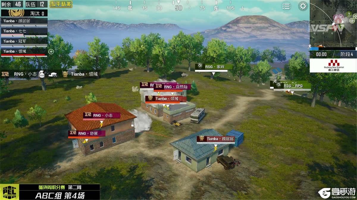 第四场比赛为海岛图,航线为军事基地飞往G港西部。第二阶段,SMG与FPX在野外房区恶战,SMG最终险胜PFX,随后被XQF打靶淘汰。第三阶段,AgFoxBlack与WF交战,AgFoxBlack在占据小的优势后直接强冲WF反被WF淘汰。第四阶段,RNG与Tianba在野外房区交战,RSG在一侧打靶,最终Tianba惨被淘汰,战斗持续到第五阶段RNG再次与RSG交战,最终也被RSG淘汰。随后4AM强冲GM5的房区,直接将GM5淘汰。