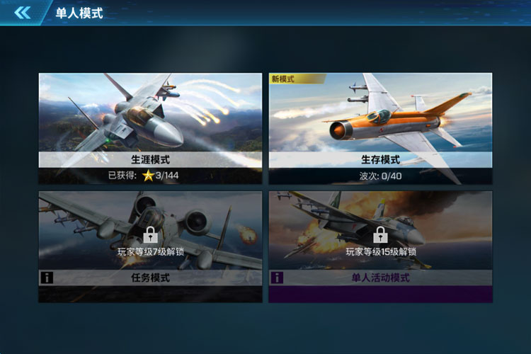 《现代空战3D》是湖南省沃尔信息技术有限公司推出的一款以现代战争为背景的大型3D空中飞行竞技战斗手游,在游戏中玩家将化身为一名飞行员,驾驶着各种型号的经典战斗机,凭借过人的胆识和精准的操作完成各种高难度任务,游戏最大的特色在于完整的收录了近现代战场上的各种知名战机,从战功赫赫的F22、SU57到让人闻风伤胆的J20和F35等,并且这些战机不仅仅是在名字上相同,更是从外观到内在属性都进行了高精度的还原,满足空军迷们对于战机的所有幻想,再加上高清视网膜显示技术和全新的3D引擎,为玩家呈现出一场兼具操作性与竞技对抗性的极致游戏体验!快来下载《现代空战3D》与好友一起在令人肾上腺素飙升的空战冒险中协力对抗敌机的袭击以称霸天空!