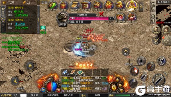 1、开局福利:开局送开天斩、逐日剑法、超级祝福油