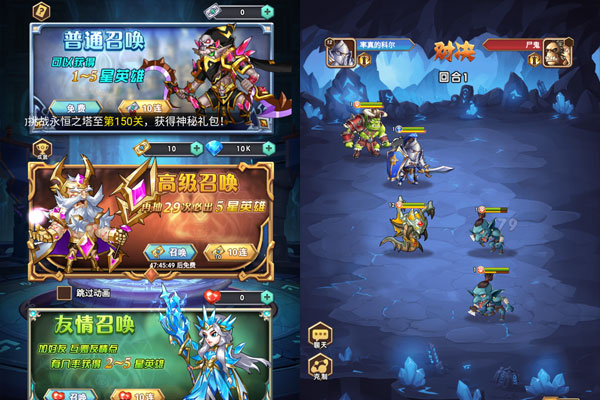 《命运战歌》是一款魔幻Q萌风格的地牢式放置RPG游戏,融合了轻度策略战斗和趣味探索冒险。灵巧布阵释放高能战力——势均力敌的对抗才能有看头,旗鼓相当的PK才能点燃胜负欲,唯有排布强力阵容,才能夺得凯旋的名誉!