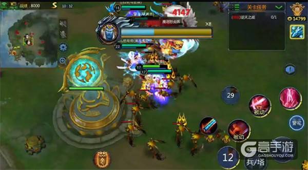 游戏开始时,炎魔处在无敌状态,会派出魔军不断攻击玩家主城,这个时候需要玩家防守基地并提升自身实力。