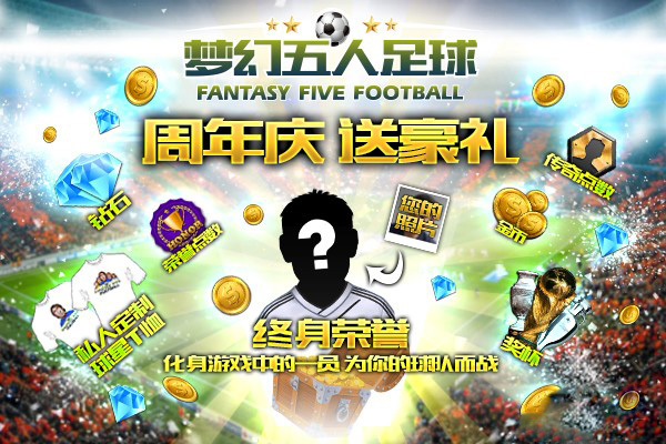 祝《梦幻五人足球》一周年生日快乐!祝一年来陪伴我们成长的新老玩家周年愉快!