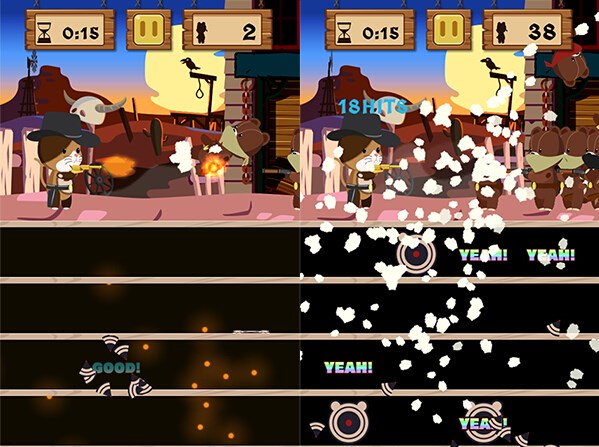 游戏模式方面,除了有在限制时间内看玩家们能打倒多少敌人的“Gun Fight”枪战模式之外,还有让玩家们来进行一对一决斗,看谁能先把对方射倒的“Duel”决斗模式玩法,而这两个模式都将会对应在线排行榜,让各位在减压之余,也能来挑战其他玩家们所创造的高分数成绩!