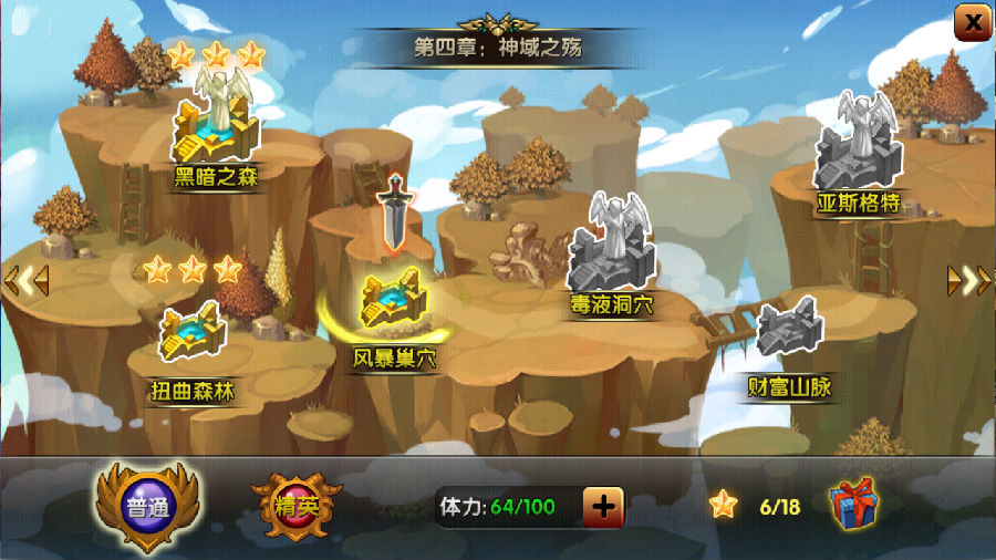 整体操作界面还是非常的简洁明了,顺便提一下这场景很像目前非常经典的大型mmorpg《魔兽世界》中的场景,不过在《魔龙勇士》中,此处是恶魔窟,也就是大量出产洗练石头的地方。