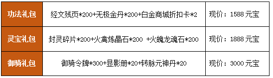 活动内容:活动期间,商城元宝区部分道具全部6折优惠。商城打折季,机会超难得,赶快参加吧!