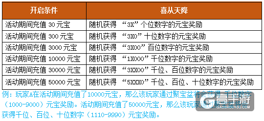 活动内容:为了回馈广大玩家对我们的支持,特此开启聚宝盆回馈活动,活动期间内,玩家可直接在游戏界面右上角【活动】按钮内参与聚宝盆喜从天降活动,可以领取相应充值阶段的回馈奖励。