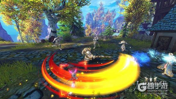 这个技能不仅提供了大范围的输出,并且具有较远的位移距离,能够在各个屋顶间穿梭自如,甚至不需要坐骑的支持,通过跳跃平台就能站上战场的至高点。