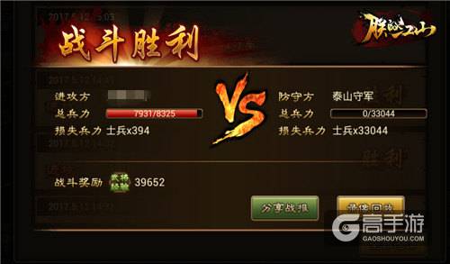 上图可以看到,在郡守区打完野城只损失了几百的兵力,出兵时也省了不少粮草。这个结果得益于前排肉盾武将的抗揍性以及群体输出的给力,再加上刘备的巨奶才能实现。不过,这个组合对于武将的练度还是有不小需求的,大家还是多攒点武魂吧。